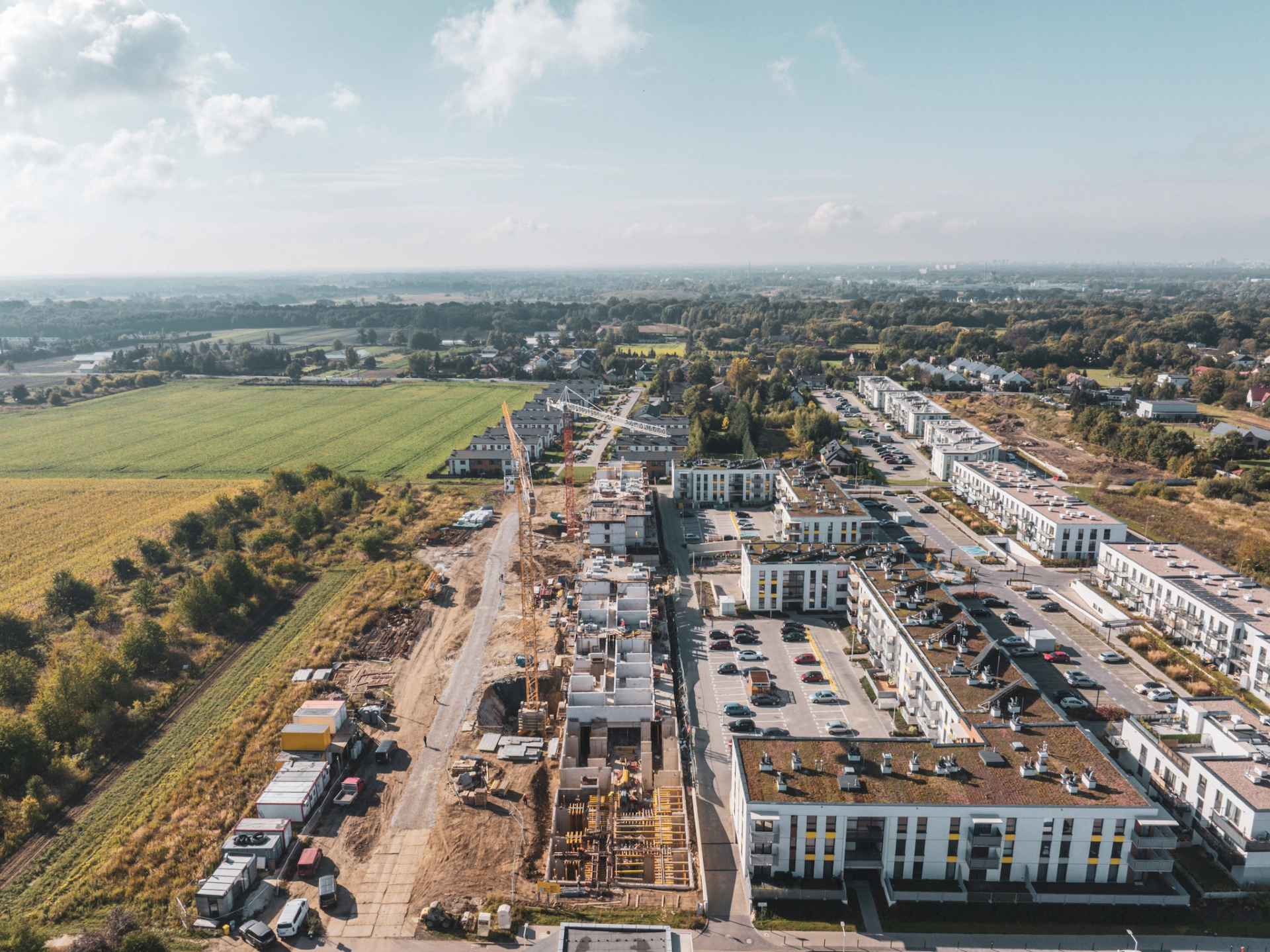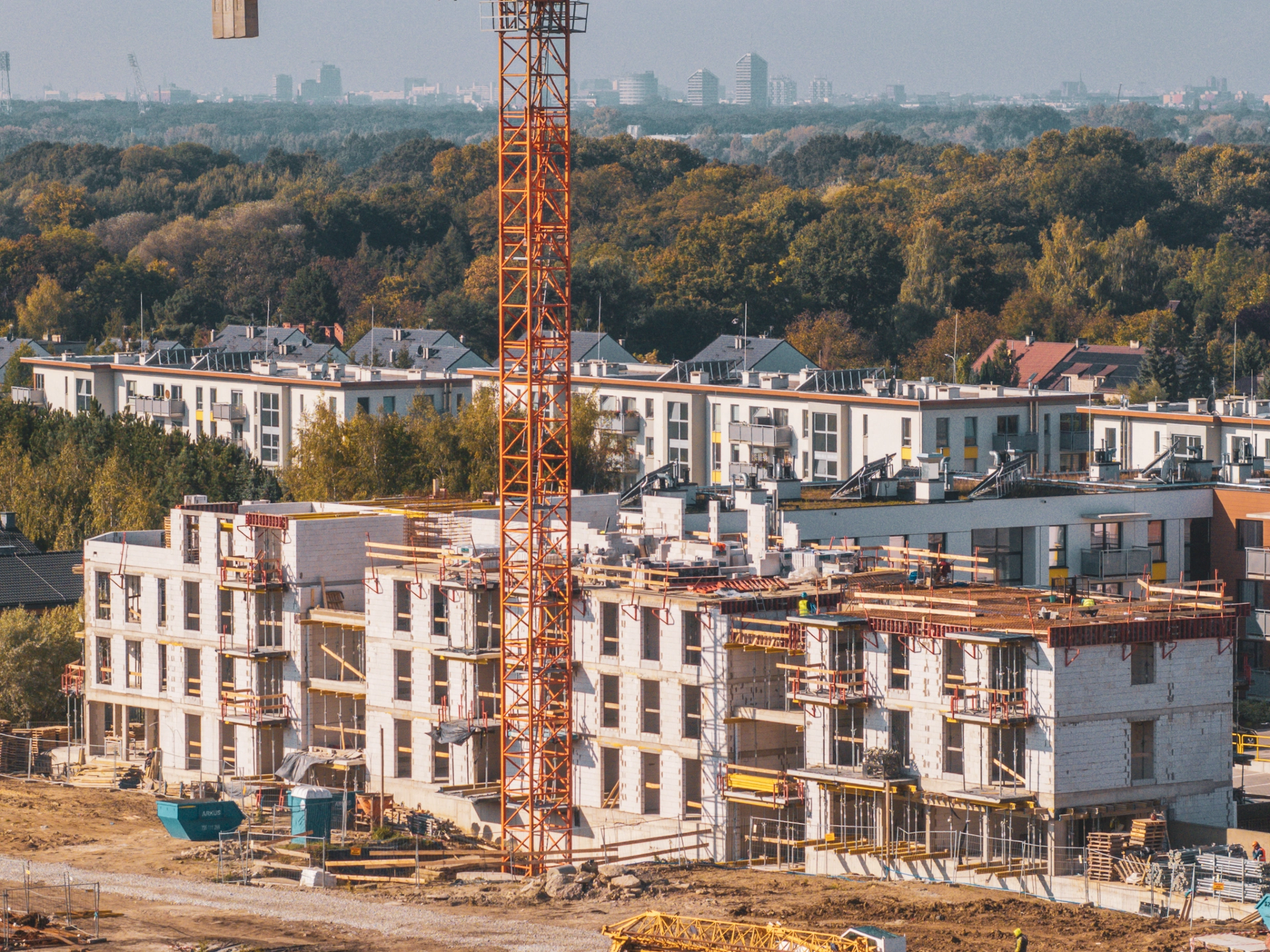 Spadają liście z drzew, ale nie tempo prac na Osiedlu Latawców – budynek C ma już trzy kondygnacje, w budynku B gotowy jest częściowo strop nad garażem podziemnym, a sprzyjająca pogoda pozwala nam budować bez przerwy. Jesień pełna kolorów, a na budowie pełna energii – zapraszamy do zapoznania się z ofertą dostępnych mieszkań!